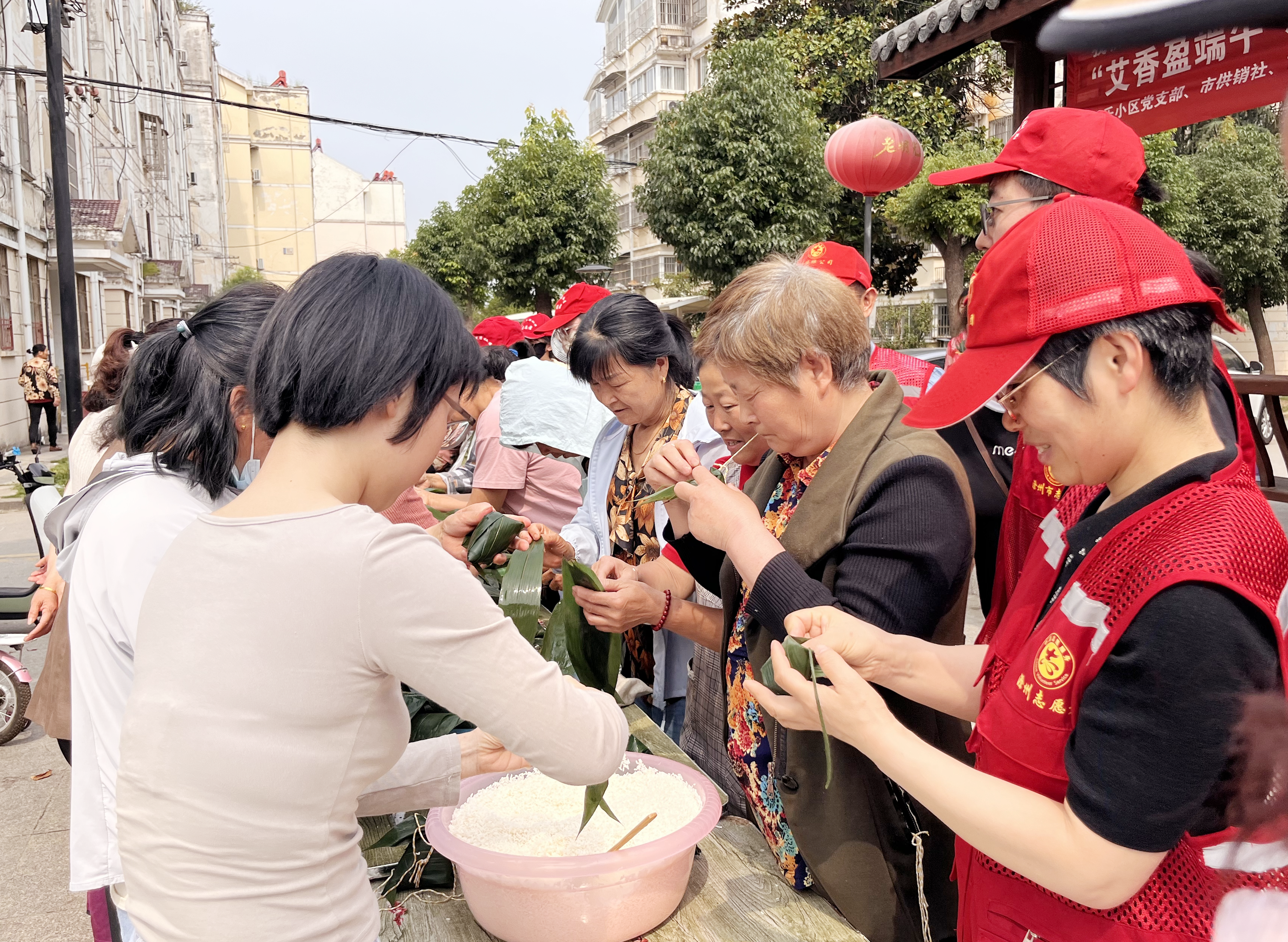 5月28日上午,集團(tuán)三個(gè)黨支部的黨員志愿者們來到了十三里店社區(qū)天樂北苑,會(huì)同社區(qū)和共建單位黨組織,聯(lián)合舉辦“艾香盈端午,粽香鄰里情”社區(qū)居民端午節(jié)包粽子活動(dòng),志愿者們提前準(zhǔn)備好了粽葉、糯米、扎線、桌椅、盆、桶、手套、口罩等包粽子食材和工具,現(xiàn)場群眾踴躍參與,場面異常熱烈溫暖。黨員們一邊維護(hù)好活動(dòng)秩序,一邊幫忙將包好的粽子仔細(xì)擺放、點(diǎn)數(shù)、打包和登記,確?;顒?dòng)有序和諧開展,讓社區(qū)居民高興而來,滿意而歸,營造濃濃的端午節(jié)日氣氛,推進(jìn)和睦友善的鄰里情誼。