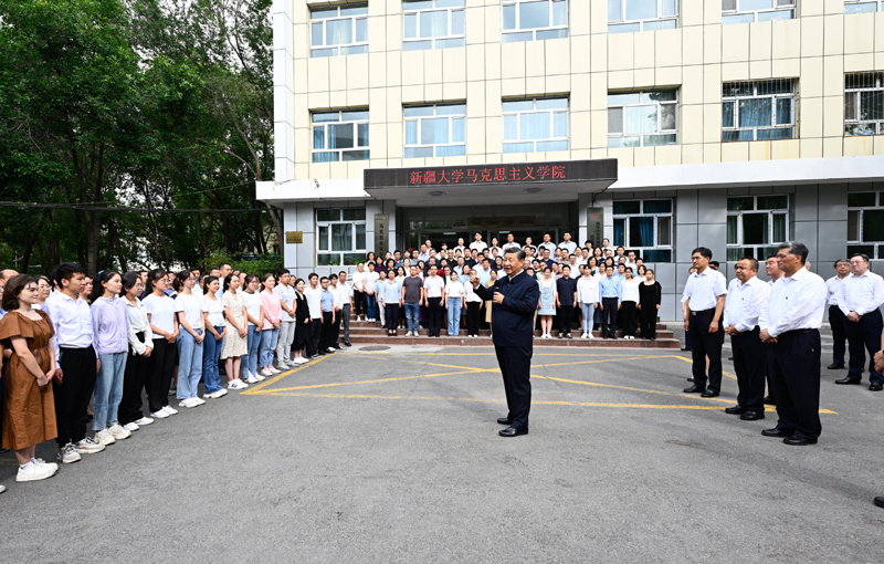 7月12日至15日,習近平在新疆維吾爾自治區(qū)黨委書記馬興瑞、自治區(qū)政府主席艾爾肯·吐尼亞孜陪同下,先后來到烏魯木齊、石河子、吐魯番等地,深入學校、國際陸港區(qū)、社區(qū)、博物館、農村和新疆生產建設兵團等進行調研。
